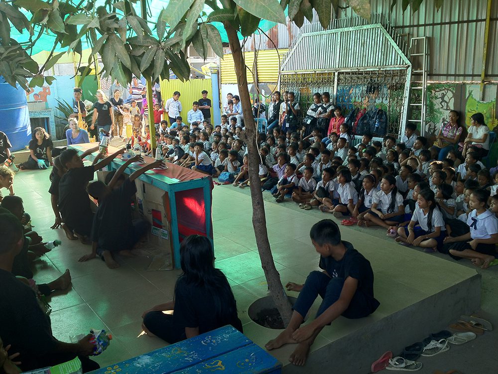 PIO oriente spécifiquement ses efforts vers les décharges publiques où le gouvernement a relocalisé des centaines de familles sans offrir en contre partie de structure publique. Au cours des huit dernières années, PIO a construit trois écoles qui servent plus de 800 enfants. L’organisation travaille avec le Ministère de l’Éducation et des Affaires des Femmes, et offre, en plus de l’enseignement général, une formation spécifique en cuisine, coiffure, couture et esthétisme. PIO s’est engagé appuyer l’objectif des Nations Unies de réduire la pauvreté. En 2010, Phymean Noun a été nommée héros de CNN. Touché par son travail, CORPUS a initié et produit « From Slums to Stage » pour offrir aux étudiants de PIO accès à davantage d’éducation artistique.